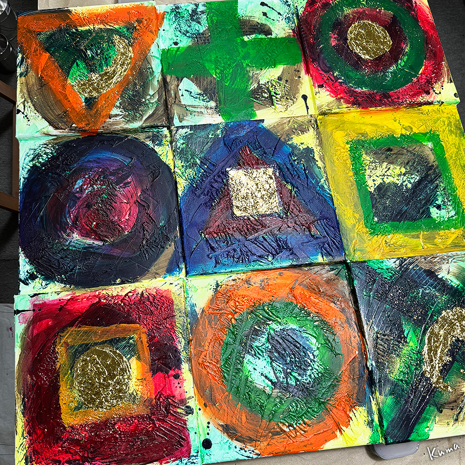 9枚のキャンバスを組み合わせているので、強度確保のために外枠を付けた方が良さそうだな。