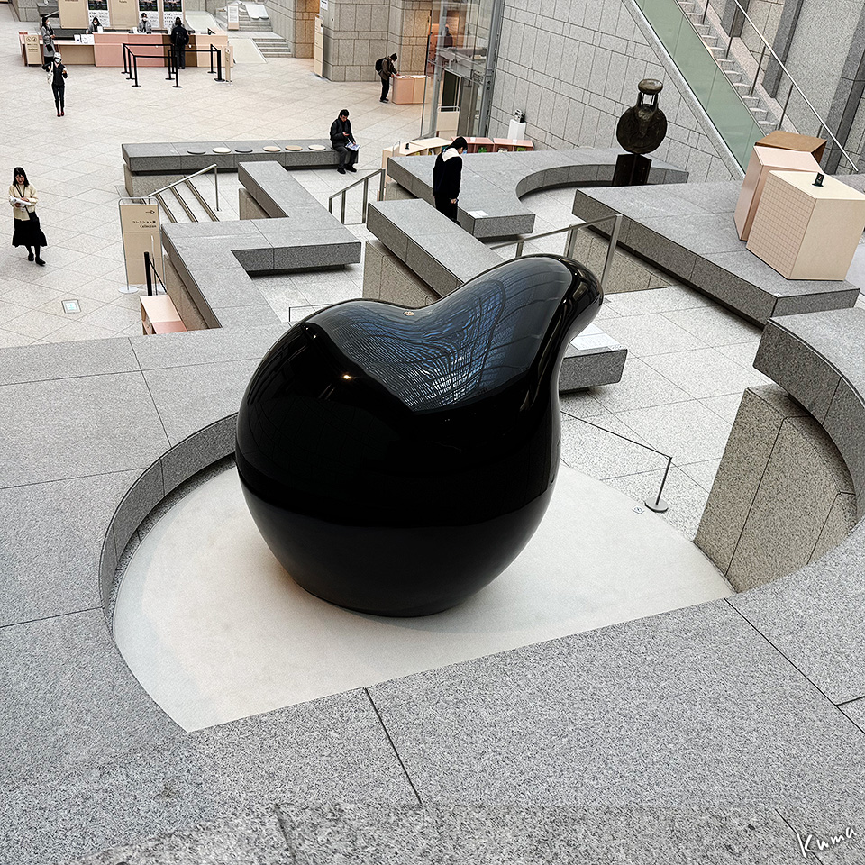 これはアルファベットの Q がモチーフ。光沢の曲面に鑑賞者自身や周囲の景色を写し込む Q = クエスチョンなのだろうか。