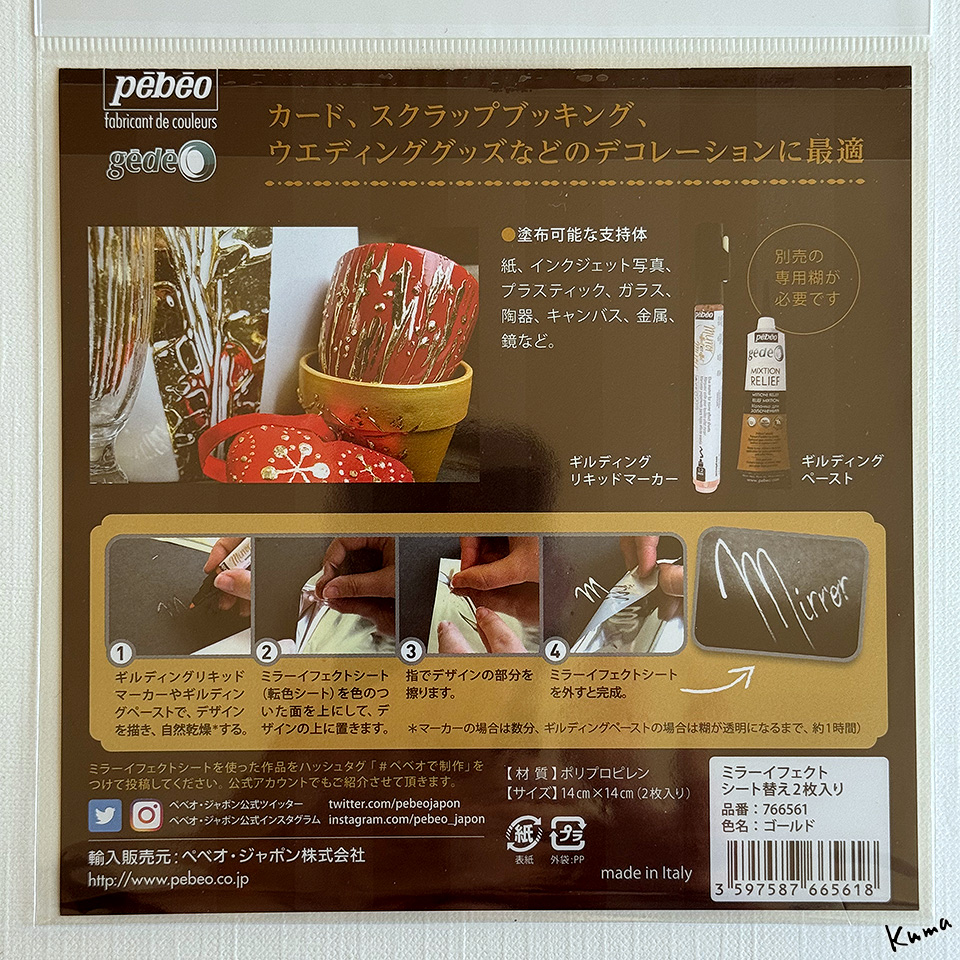 これは別売の箔にある日本語の説明だが、マーカーとペーストのパッケージには日本語がないので、これがないと使い方がわからない。