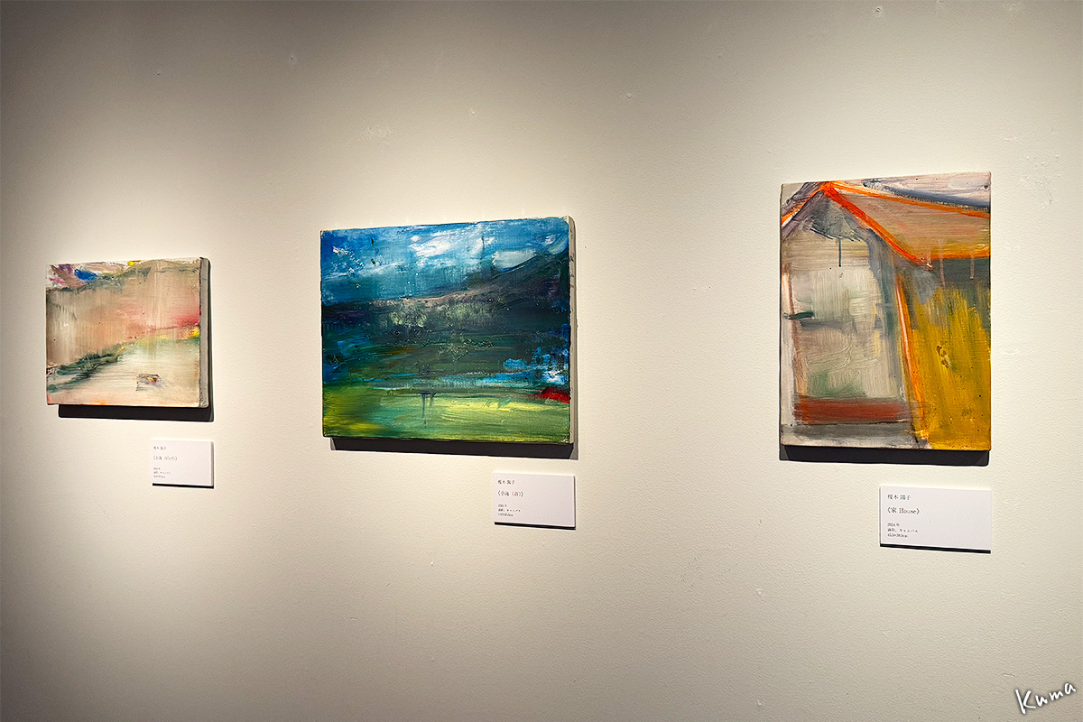 油絵3点。中央が「小海(青)」3点とも榎木陽子。