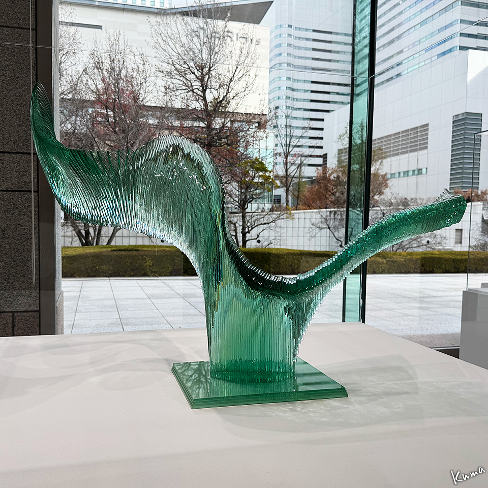 板状のガラスを張り合わせたような作品で、全体で翼のように見える。
