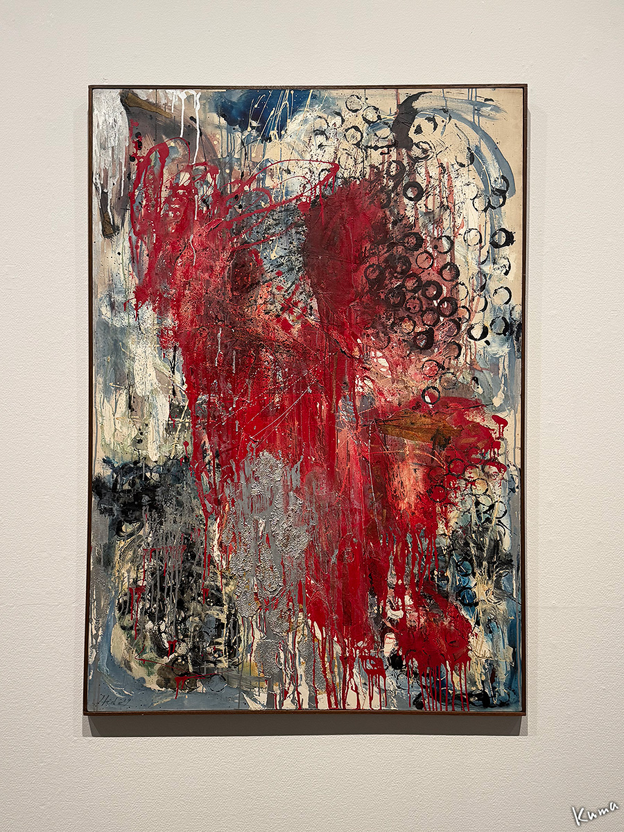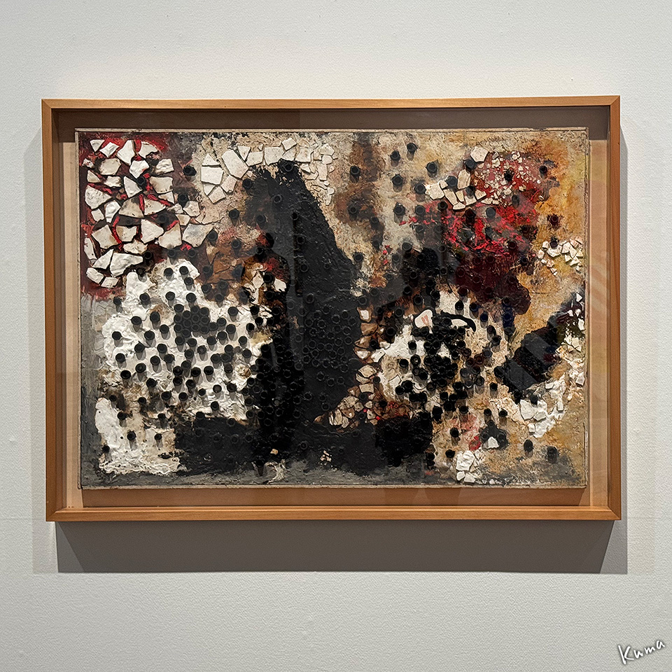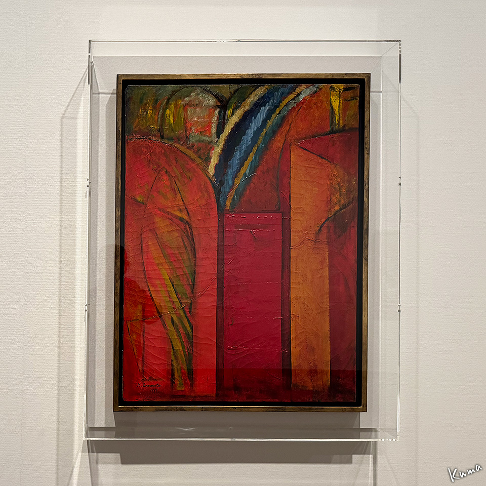 「記憶の時」榎本和子/1930〜2019。画面上の技法的実験と、シュルレアリスム的イメージの探求もしていた。