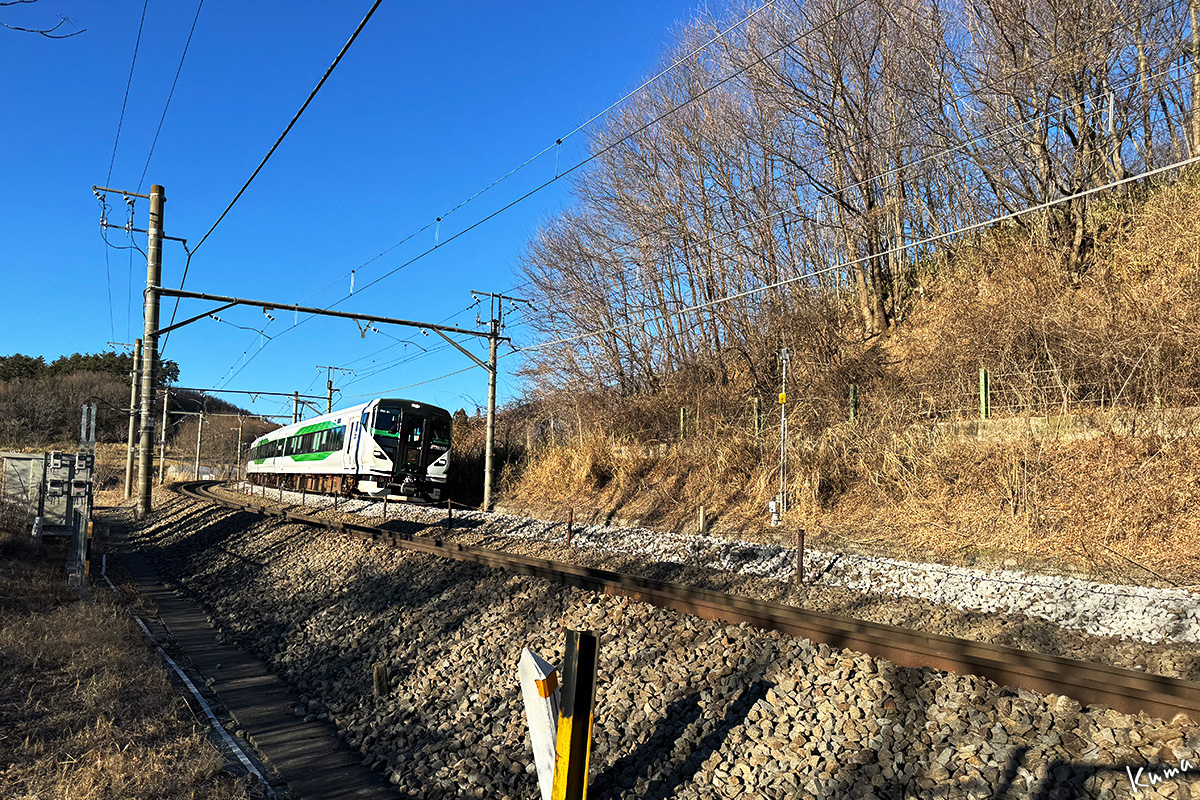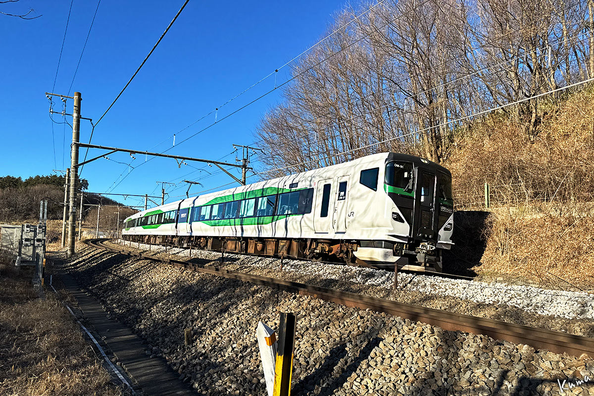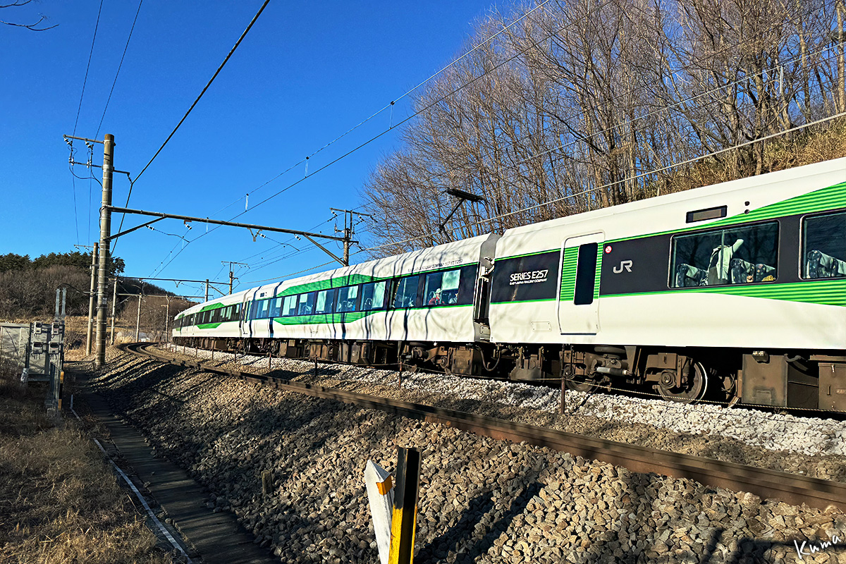 投稿日: 2026年1月28日2026年1月27日 投稿者: くまぱぱE257系 5000番台 1月12日に走った臨時特急あずさ。 車両は以前「あずさ」や「かいじ」に使用されていたE257系。 5000番台として改装されているし、塗装もいい感じだ。 波動輸送用なので、定期運用はされていない。 中央線でいつも観られる列車ではないのが残念だ。
