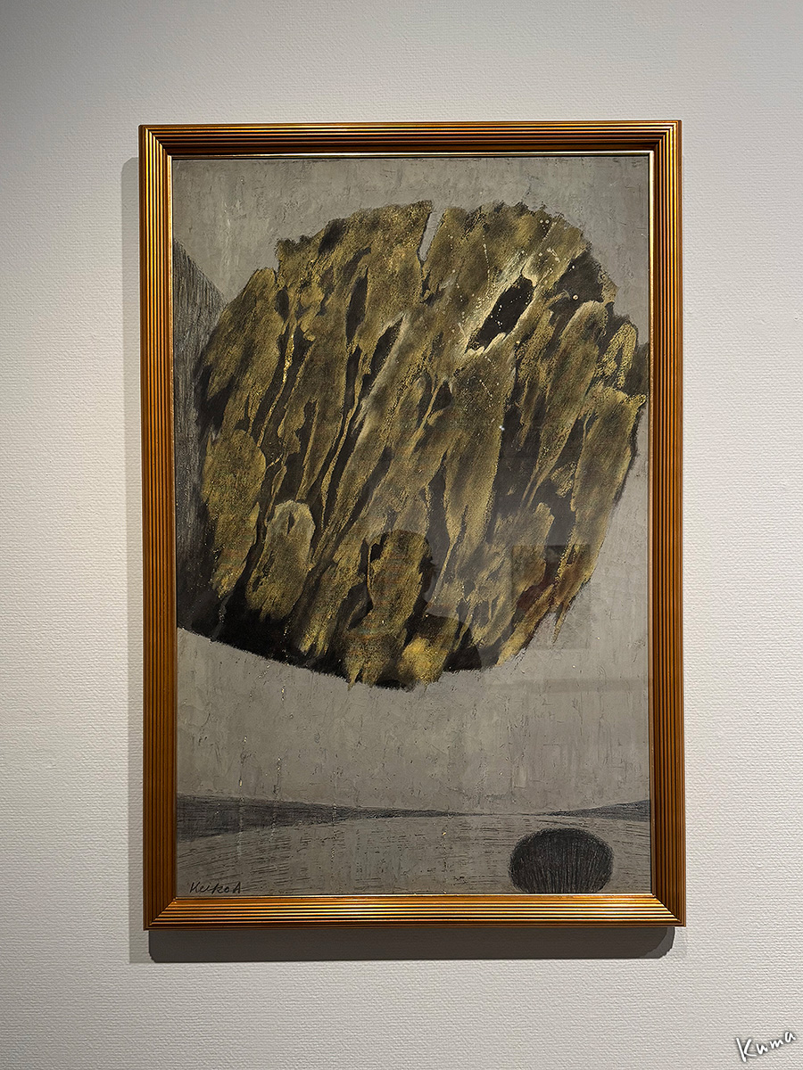 「スペースに於ける物体」赤穴桂子/1924〜1998。宇宙を思わせる空間の抽象画を制作。晩年は銅版画を中心に発表。