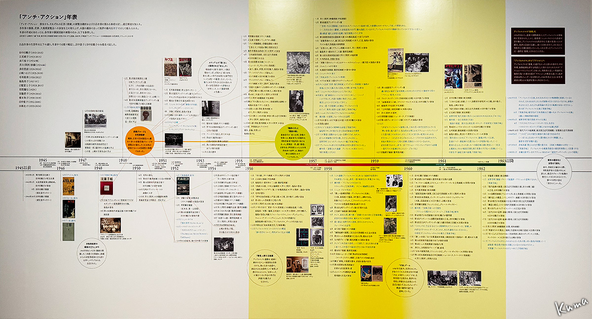 この企画展「アンチ・アクション 彼女たち、それぞれの応答と挑戦」の趣旨と作家を説明する年表。ここに掲載できる大きさでは文字が読めないのが残念だ。