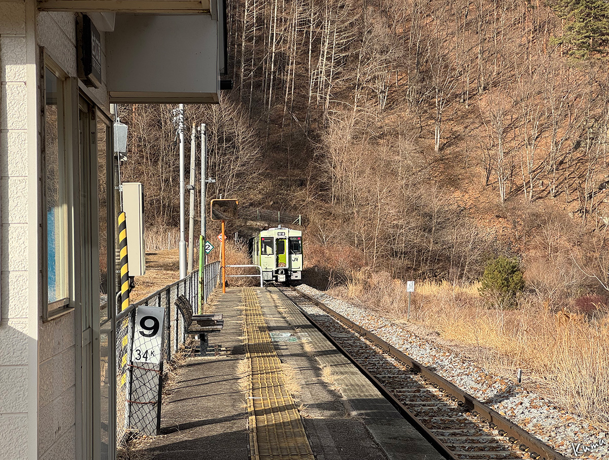 流石に現在では駅の西側斜面上に人家も少し出来ているが、ホームから眺める東側には千曲川の流れと山しか見えない。