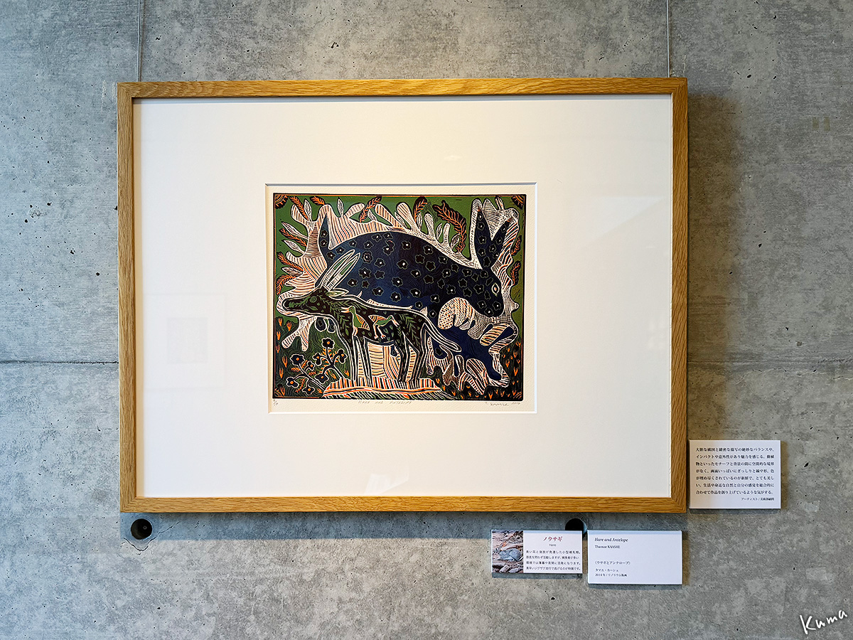 「ウサギとアンテローブ」タマエ・カーシュ/リノリウム版画。