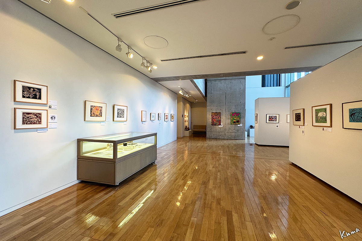 殆どの作品がリノリウム版画・・日本で馴染みのある名称は「ゴム版」という、昔から子どもたちが年賀状などに用いた版画の技法だ。