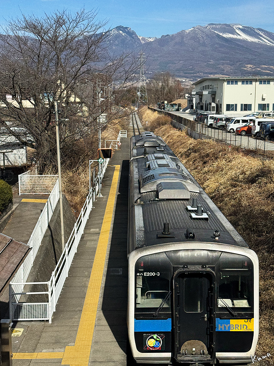 投稿日: 2026年2月11日2026年2月10日 投稿者: くまぱぱ美里駅を出ていくハイブリッド列車 ここは小諸市にある小海線美里駅。 小諸行きのハイブリッド列車が発車していく。 キハE200の2両編成。 普通列車として運用されている。 ハイブリッド車両の実用データを採るために、世界初の営業運転として小海線に3両のみが配置された希少な形式だ。 そのデータを活かして製造されたHB-E300系が、津軽線・大湊線・五能線・大糸線などにリゾートトレインとして導入されている。 しかし、小海線では最初に配置されたキハE200の3両のみで、ハイブリッド車両が増備される気配はないのが残念だ。
