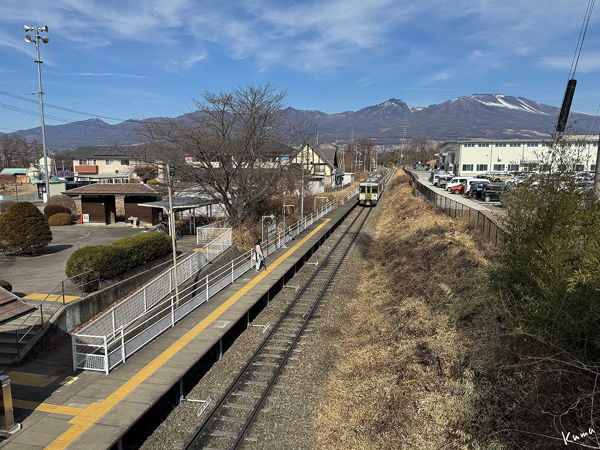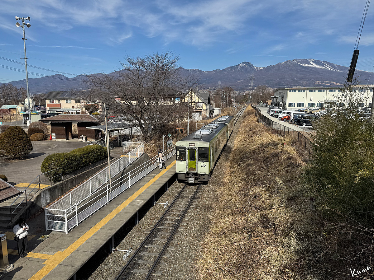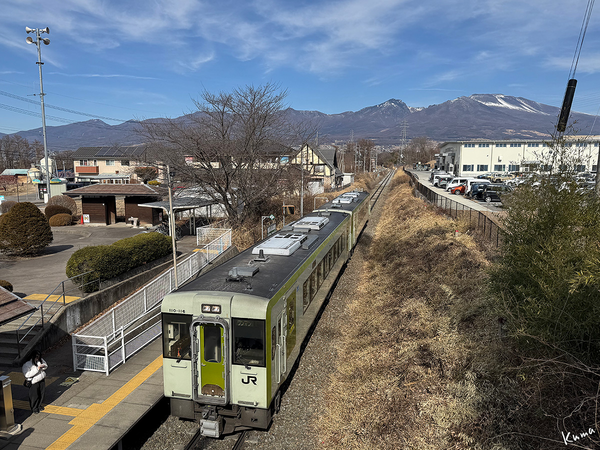 投稿日: 2026年2月21日2026年2月20日 投稿者: くまぱぱ浅間山と美里駅 小諸発の列車がやってくる。 上り小淵沢行きの普通列車だ。 ホームには和弓を持った若者が待っている。 待合所からも一人女性が出てきた。 浅間山に見送られて、どこまで出かけるのだろうか。