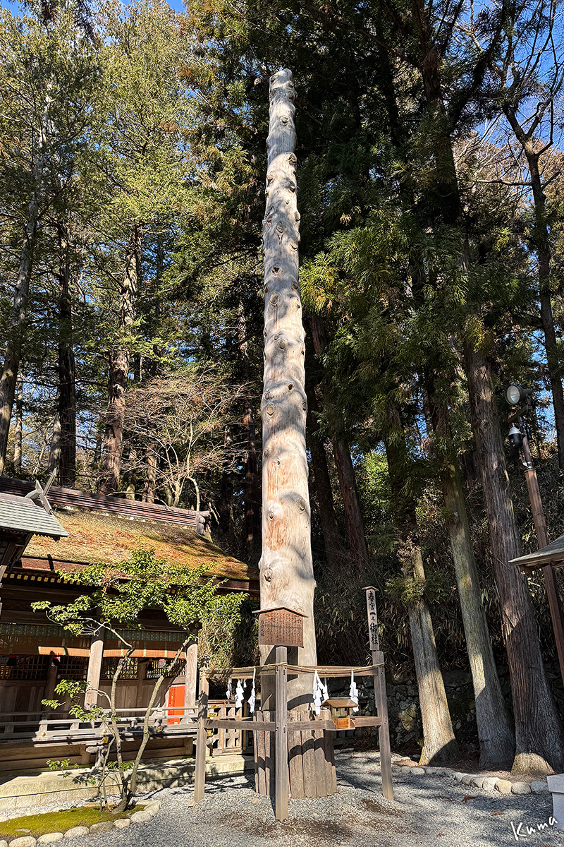 「春宮一の御柱」が拝殿の手前右の端に立っている。