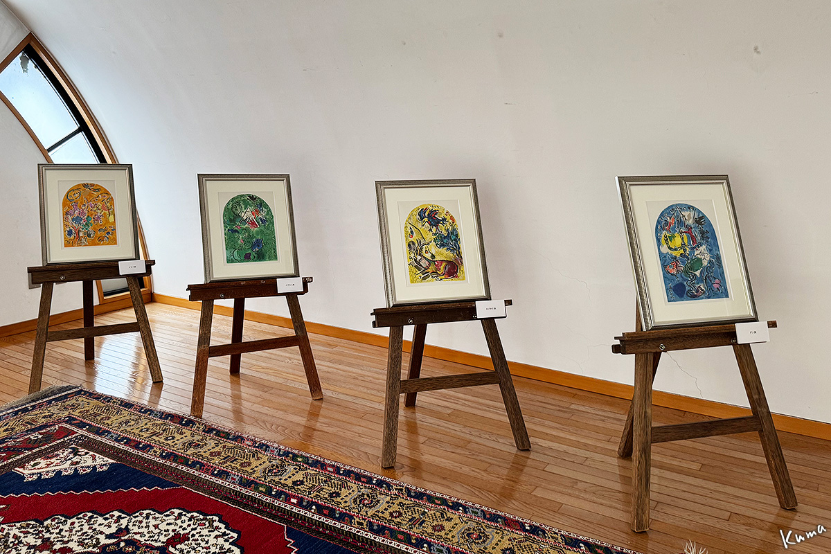 シャガール作の「エルサレムの窓」の連作。ユダヤ教会のステンドグラスのための作品(リトグラフ)が並んでいる。