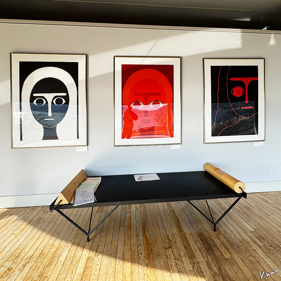 美術館フロントに戻る途中のサンルームのような空間に、西山寛紀氏によるジークレープリント作品が並ぶ。