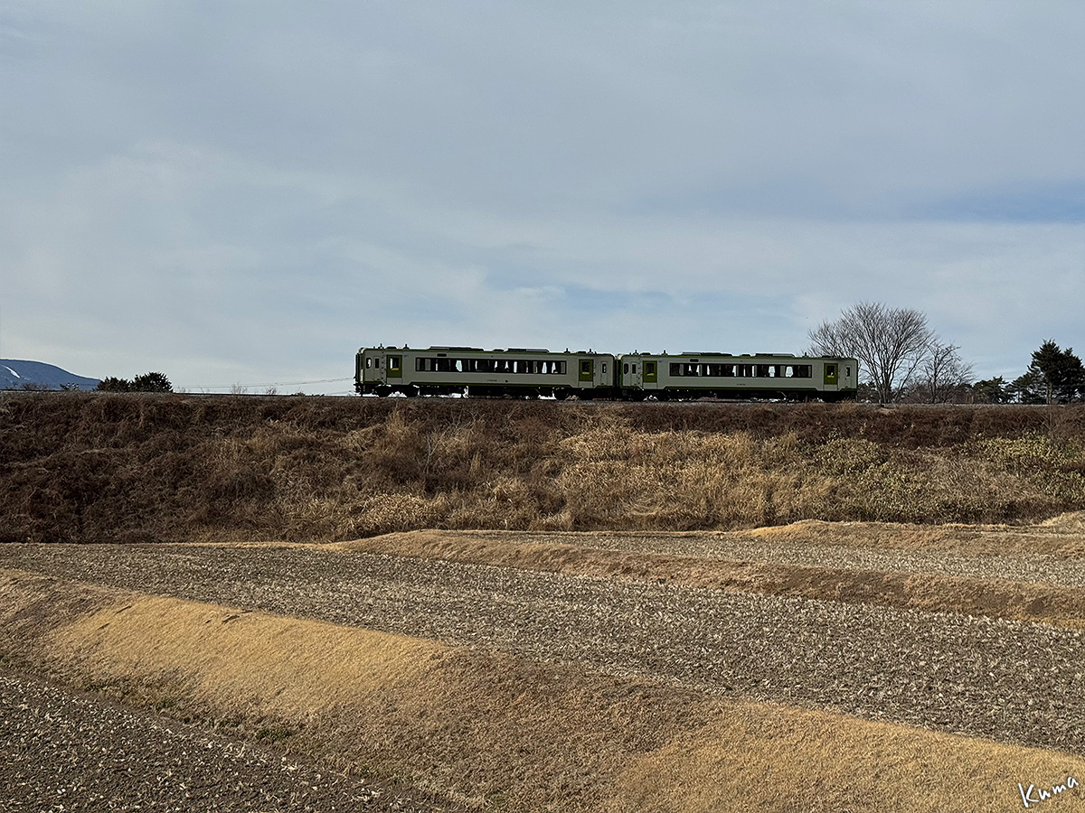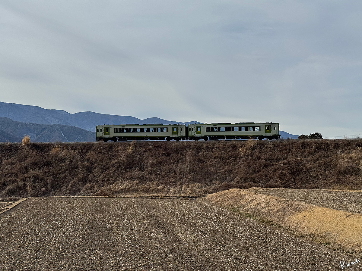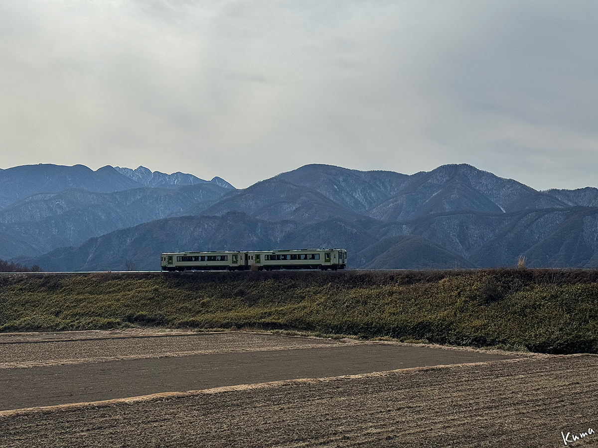投稿日: 2026年3月20日2026年3月19日 投稿者: くまぱぱ大曲りの風景 列車がカーブに入ると車内では左に甲斐駒ヶ岳が見える。 右前方には八ヶ岳の雄大な姿がある。 この辺まで来ると八ヶ岳が真正面だ。 360度全周に全く障害物のない眺めが続く。 そろそろ八ヶ岳が左前方の車窓に移ってくる。