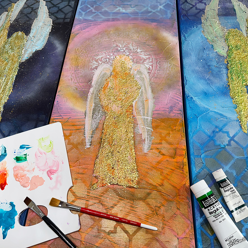 透明メディウムと水を足して透明色にしている。