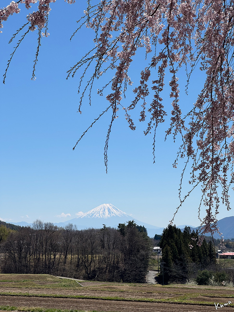 投稿日: 2026年4月9日2026年4月8日 投稿者: くまぱぱ天地豊饒 北杜市の新たな桜の名所になりつつある場所。 八ヶ岳を望む田園沿いの土手に満開の花を咲かせる。 振り返れば枝の下に南アルプス鳳凰三山。 更に霊峰富士も枝垂れた枝の下に見渡せる。 普通の桜も少しあるが、枝垂れ桜は全て神殿の大糸桜の子であると言う。 最初の写真にある石碑「天地豊饒」とは、天と地の恵みによって、農作物や自然の産物が豊かに実ることを指す。