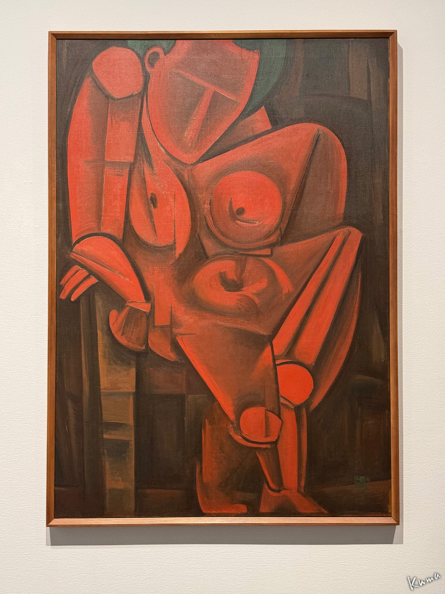 「もたれて立つ人」萬鉄五郎。前回の「裸体美人」ではゴッホ、これはキュビズムだね。どちらにしても日本で最初らしい。