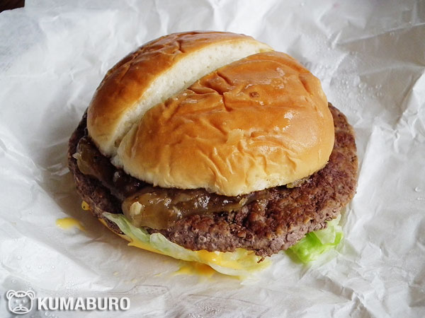1/4ポンドの大きなビーフパティの下に、チーズとフレッシュレタス。