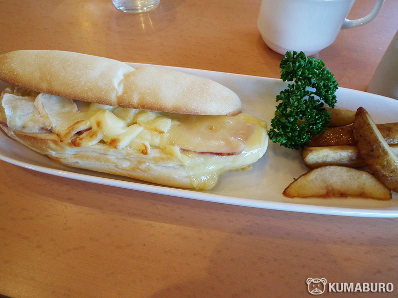 写真は「3種のジャージーチーズと手づくりハムのサンドイッチ」で、私のお気に入りです。
