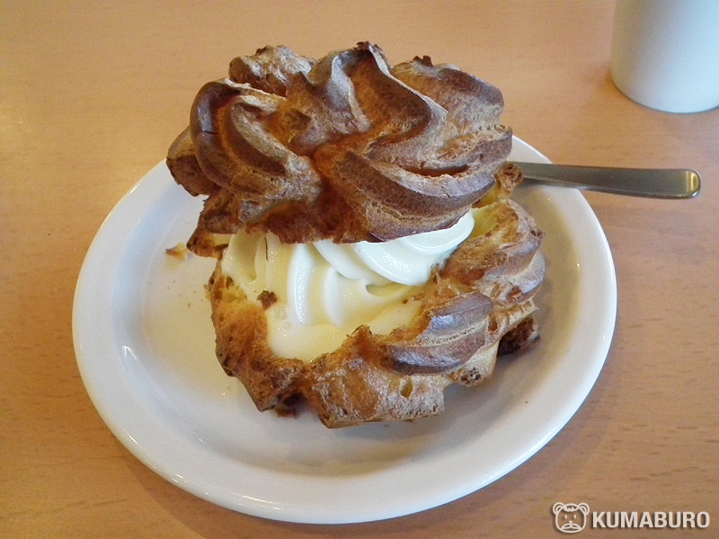 シュー皮は甘くないので、半溶けのソフトをからめて食べるといいですよ。