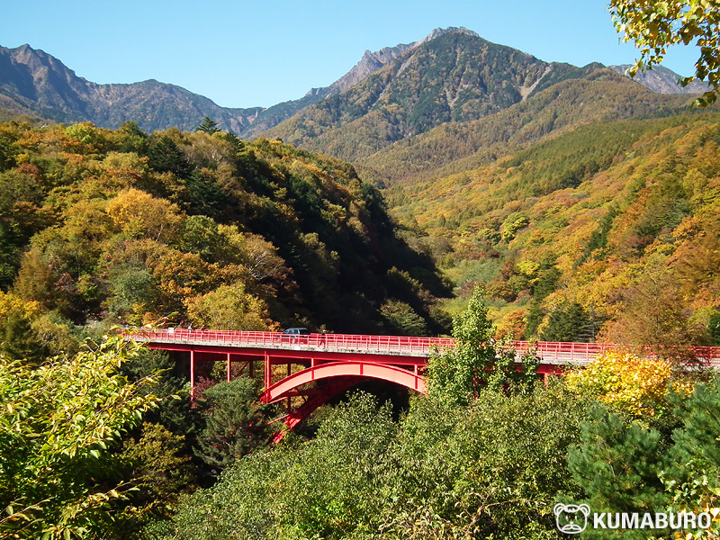 投稿日: 2012年10月20日2012年12月23日 投稿者: くまぱぱ赤い橋の紅葉 2012 赤い橋と呼ばれる川俣渓谷東沢大橋です。八ヶ岳の秋の名所の一つですね。このところの冷え込みで一気に色付いて来ました。 天候にもよりますが来週中が見頃でしょう。八ヶ岳は、赤く変わる木が少ないので派手さはありませんが、通好みの渋みのある美しさですよ。標高差と樹種から、黄葉の見られる期間代わりと長いのも特長です。