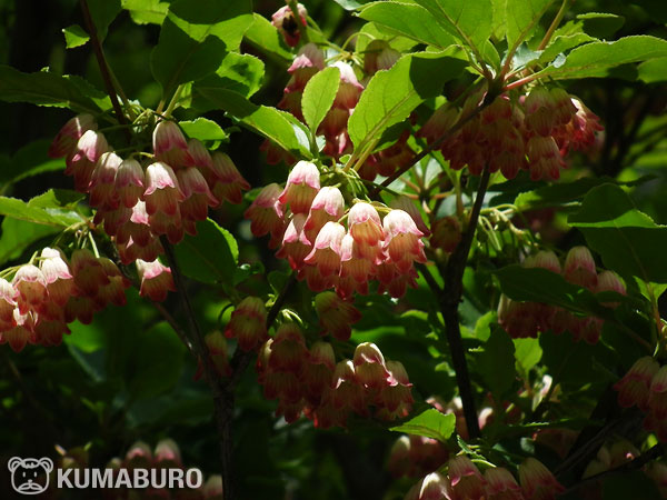 普通のドウダンツツジは白花ですが、クリーム色に紅の更紗模様が入ったような花が特徴です。