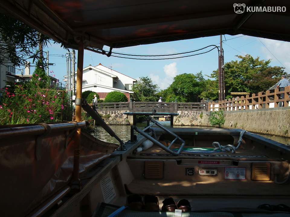 投稿日: 2013年10月30日2013年10月29日 投稿者: くまぱぱ松江 船で堀川めぐり 屋根船で松江城のお堀をめぐりました。 お堀から眺める松江城もまた格別です。 名調子の船頭さん。 所々に桁の低い橋があります・・え〜通れないでしょう。 と、船の屋根がグーッと下がってきます。 お客はもう寝そべるようにするしかありません。 難関を突破した船は、次の船着場に着きました。(笑 ここは松江城大手門前の船着場です。 ここからは歩いて松江城に入ります。
